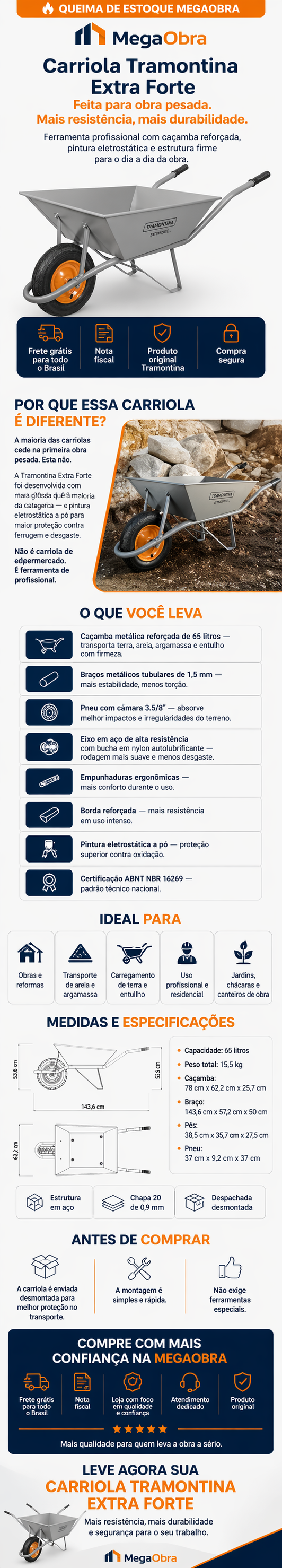 Carro de mão muito bom, para concretizar sua obra com durabilidade perfeita.