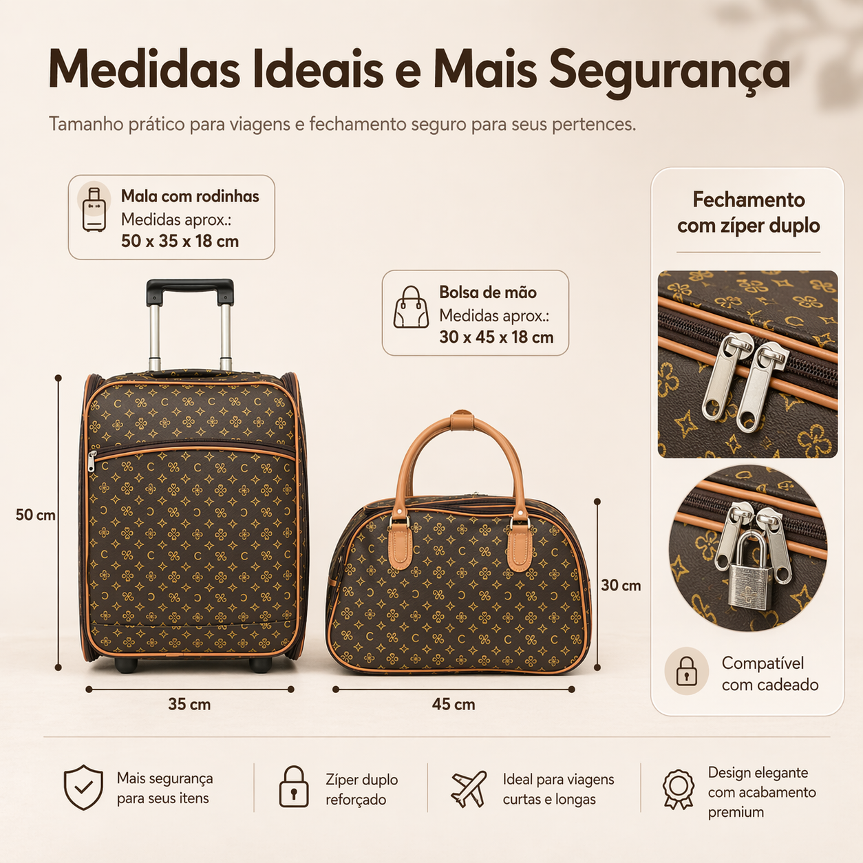 - Mala Fabricada em Couro Sintético de Alta Qualidade.