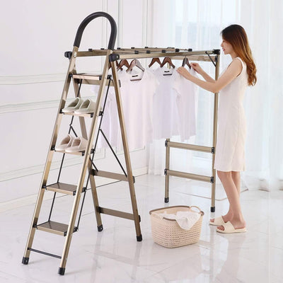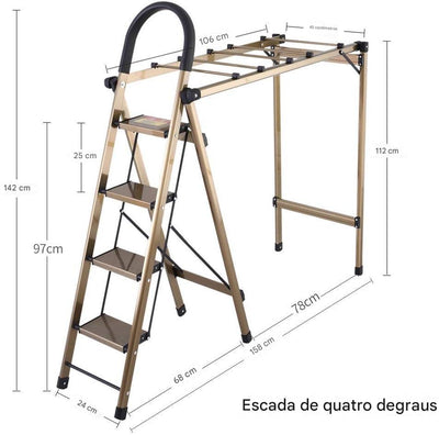 Escada Multifuncional Dobrável em Alumínio – Suporte para Roupas, Sapateira e Escada Doméstica até 150 kg