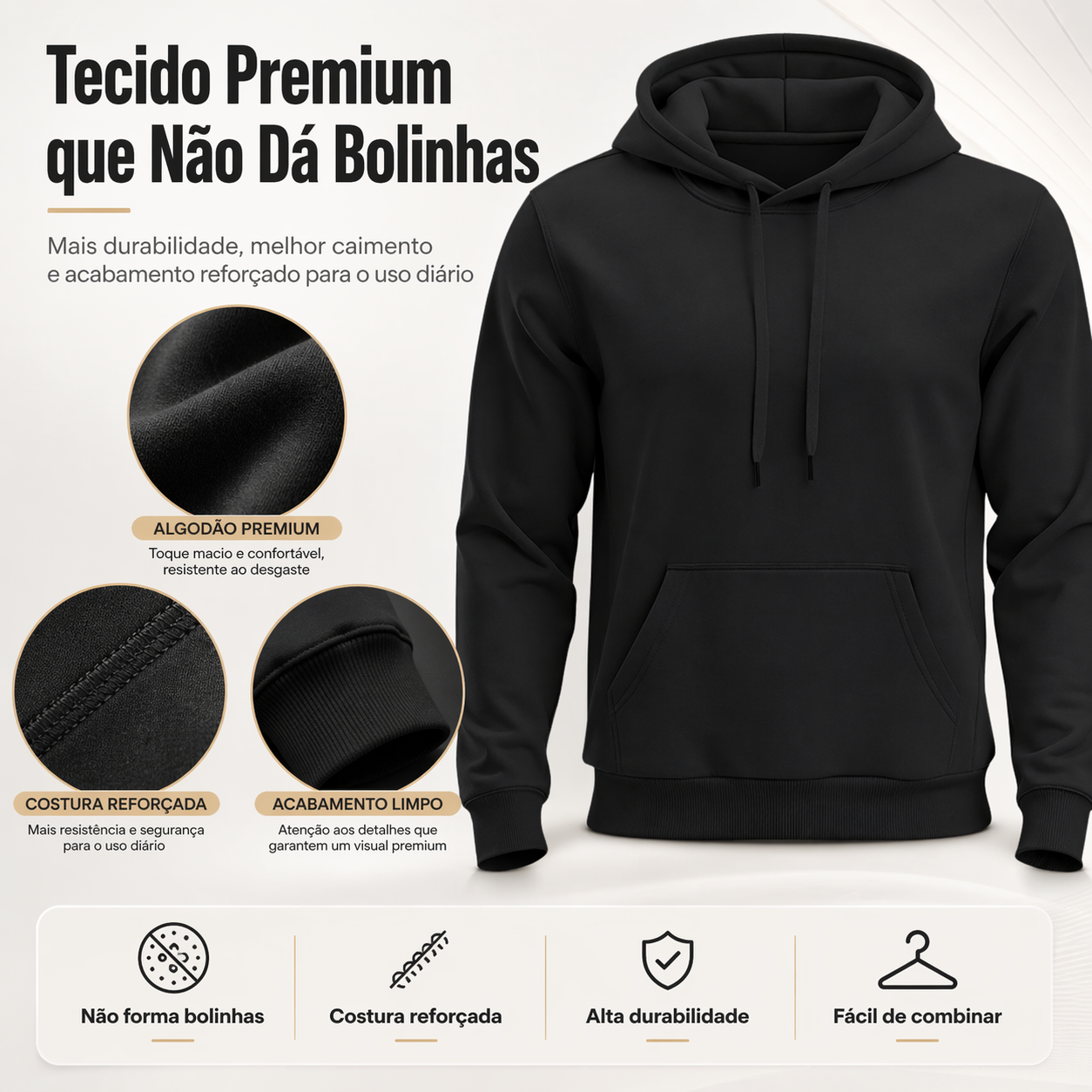 ✔️ Tecido Premium que NÃO dá bolinha: Chega de moletons que parecem velhos depois da primeira lavagem.