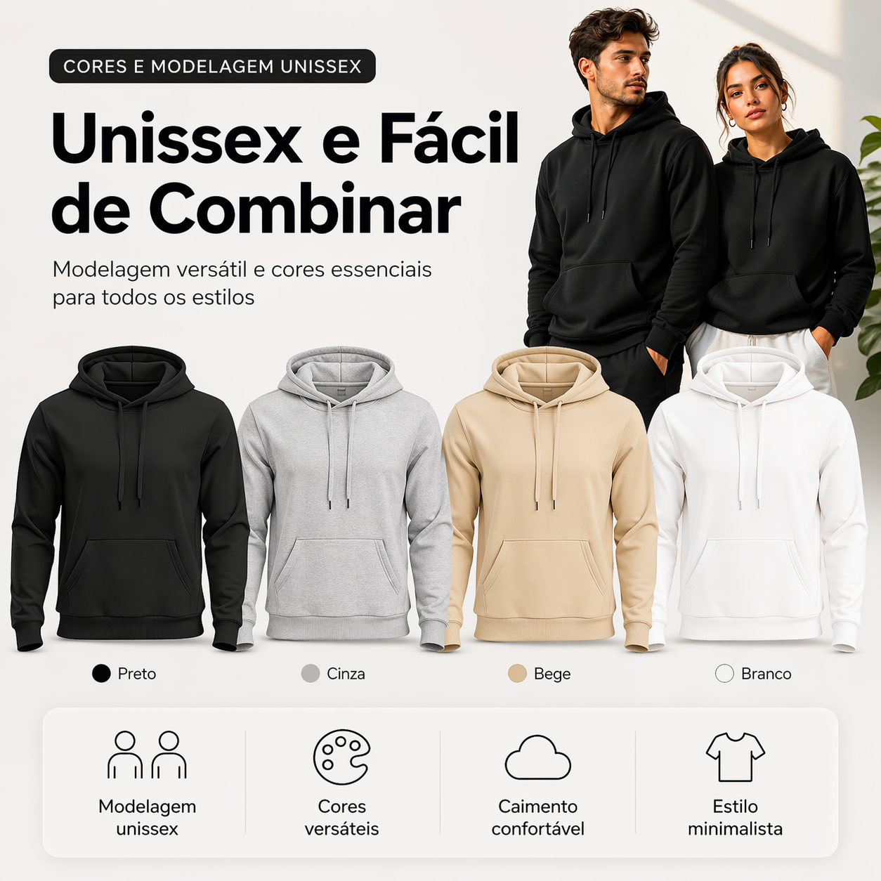 ✔️ Modelagem Unissex e Versátil: Bolso canguru frontal e capuz forrado. Caimento perfeito no corpo.