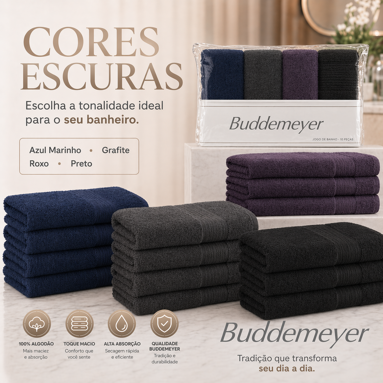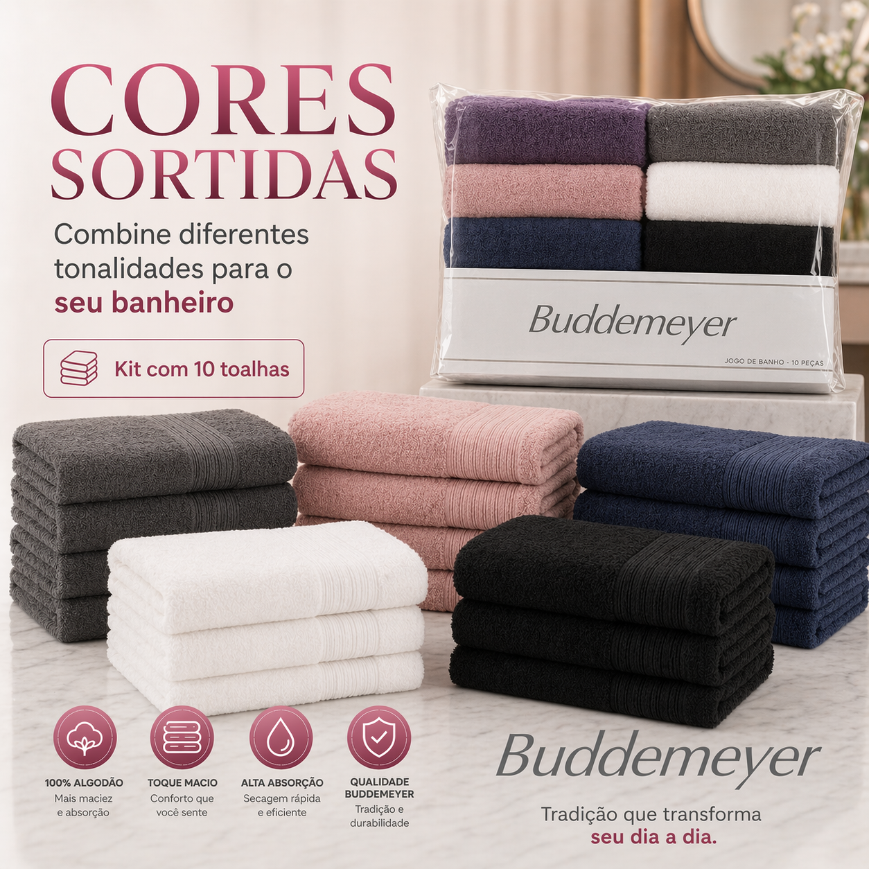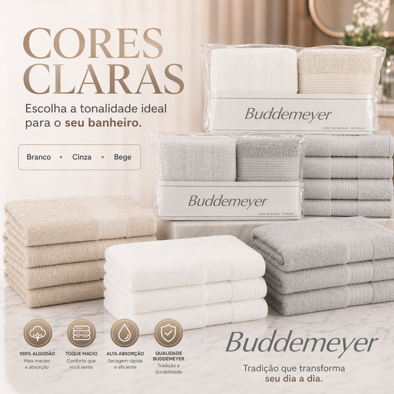 Feita com a tecnologia exclusiva Extra Soft da Buddemeyer. Ela é macia, absorvente, leve e prática Já vem pré-lavada e pré-encolhida, assegurando maciez e alta capacidade de absorção já nas primeiras utilizações Qualidade e design Buddemeyer